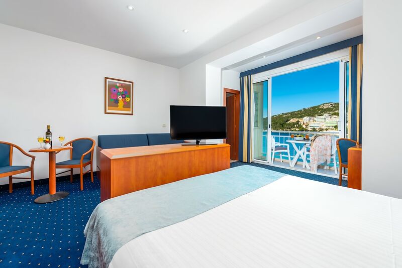 2+1 ágyas tengerre néző, balkonos szoba: kényelmesen, régebbi típusú bútorokkal berendezett, saját fürdőszobával, légkondicionálóval, ingyenes wifivel, TV-vel, hajszárítóval és telefonnal felszerelt. Tengerre néző kilátással és balkonnal is rendelkezik. A szobában egy pótágy elhelyezésére is van lehetőség.