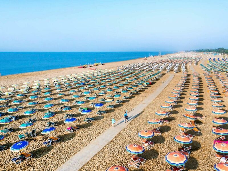 Velencétől 60 kilométerre, Caorle és Lignano település között található Bibione városa. A 8 km hosszú, átlagosan 120 méter átlag szélességű kék zászlós partjának köszönhetően népszerű a turisták körében. Strandja homokos és lassan mélyülő, ezért főként gyermekes családoknak ajánljuk. A települést turisztikai célból hozták létre, a város nem rendelkezik kulturális attrakciókkal. A strandolás szerelmeseinek paradicsoma. Partja rendezett, rengeteg napernyő- és napágy, zuhanyzók és mosdók érhetők el. Vízimentő szolgálat is biztosított. Partjának egyes szakaszai szállodákhoz tartoznak, de az azokon kívül eső részeken bárki bérelhet napágyat és napernyőt. A part 4 részre bontható: nyugatról keletre haladva: Bibione Pineda, Lido del Sole, Bibione Spiaggia és Lido dei Pini. Közülük a legnagyobb a Bibione Spiaggia strand. A város keleti részén kutyastrand is található (Spiagga di Pluto). A nyári időszakban zsúfolt nyaralóhelyen számtalan motoros és nem motorizált vízi sportolási lehetőség is elérhető. A partot éttermek, ajándékboltok, üzletek és kávézók szegélyezik. A városban található egy gyógyfürdő is a Bibione Thermae, ahol több termálmedence és wellness szolgáltatás is elérhető. Kirándulási és kikapcsolódási lehetőségek a környéken: Lignano irányába Aquaparkok és vidámparkok, Caorle, Velence.