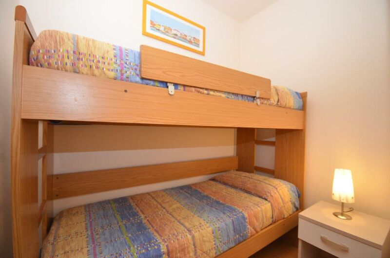B5 apartman: a két légterű apartman 4-5 fő részére alkalmas. Egy nappali részből (egyszemélyes kanapé), szoba 3 egyszemélyes ággyal, egy ablak nélküli szoba emeletes ággyal, főzőfülke, fürdőszoba, terasz és légkondicionálóval.