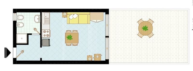 A3 stúdió: 3 személy részére alkalmas egy légterű stúdió, melyben egy kétszemélyes kanapé és egy egy személyes ágy található. A stúdióhoz főzősarok, fürdőszoba, terasz, széf, mikró, TV és kávéfőző is tartozik.