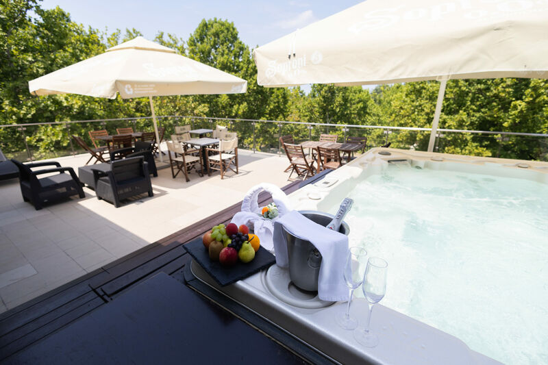 A szálloda 100 fős, légkondicionált éttermében büféasztalos választékból mindenki kedvére válogathat a hazai és nemzetközi konyha remekei közül. Ételintoleranciával rendelkezők számára előzetes egyeztetés után, igény szerint tudják alakítani a menüsort. A szálloda harmadik emeletén a vendégek pihenését és kényelmét szolgáló wellness részleg került kialakításra. A 10 fős finn szauna nap mint nap más olajokkal, nyugalmat elősegítő aromákkal nyújt testi és lelki egyensúlyt. A napozóteraszon kényelmes nyugágyak és 8-10 fős jacuzzi várja a relaxálni vágyókat. Nézze a csillagokat a jacuzziban üldögélve, élvezze a háborítatlan balatoni pihenést!
