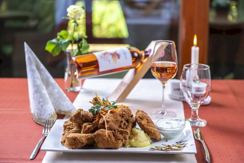 A 100 férőhelyes á la carte Fenyves Vendéglő étlapján elsősorban a magyaros ízek dominálnak. Az Élménypark 30 hektáros Arbo Tanyáján található őshonos állatok hagyományos neveléséből fakadó hamisítatlan tiszta ízek szolgálnak alapjául az ételeknek. A gourmet fogásokat a legnevesebb magyar borászok és a legkiválóbb hazai pincészetek borai és neves pálinkaházak italai kísérik.