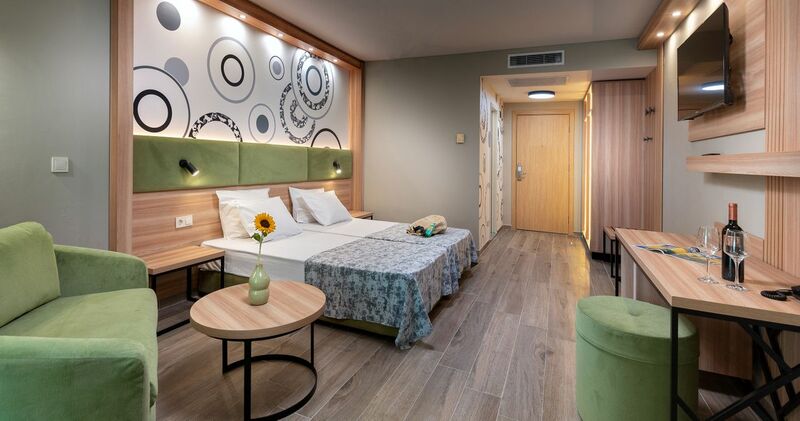 Elhelyezkedés: Ideális elhelyezkedésű szálloda. Napospart központjától 150 méterre, a homokos tengerparttól 500 méterre helyezkedik el. Medencéjének, all inclusive ellátásának és szolgáltatásainak köszönhetően kiváló választás.