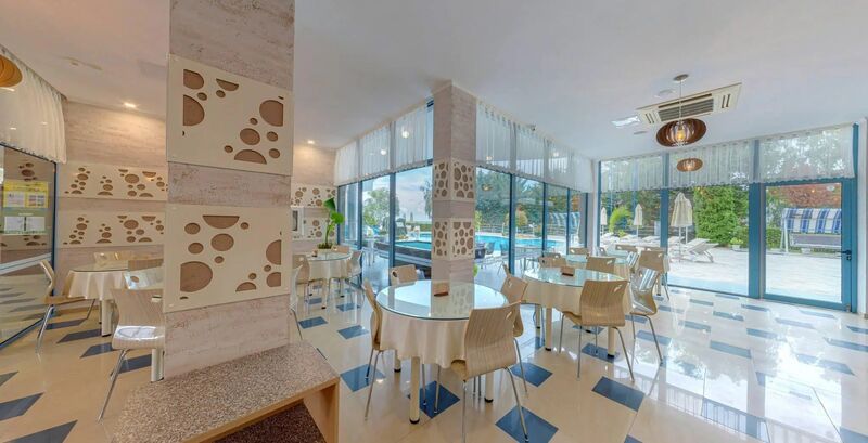 Elhelyezkedés: A 2006-ban épült és 2021-ben felújított 5 emeletes, liftes szálloda Napospart központjától 2,7 kilométerre, a homokos tengerparttól 50 méterre helyezkedik el. Ideális választás pároknak és családoknak egyaránt. Szabadtéri medencéjének és a part közelségének köszönhetően tökéletes választás.