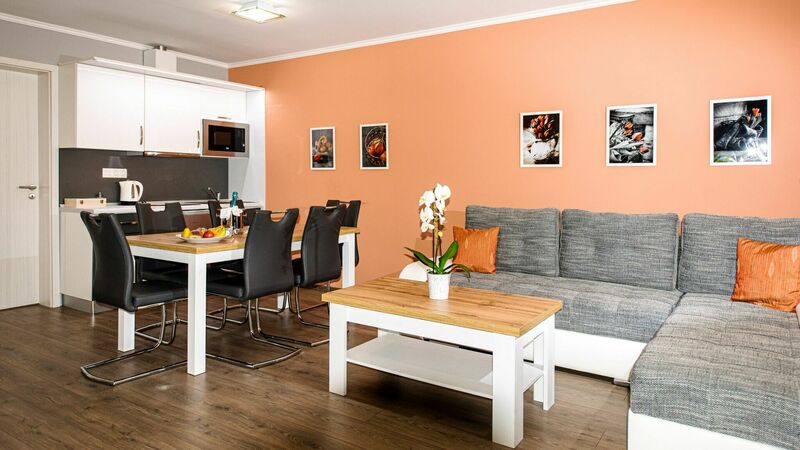 Luxus apartmanok: 10 darab, egyenként több, mint 50 m2 alapterületű, 4+2 fő fogadására alkalmas (a főépület mellett helyezkednek el, nincs fedett folyosó az apartmanok és a főépület között) is szeretettel várják a kedves vendégeket! A telefonnal, hűtőszekrénnyel, bútorszéffel, fürdőköntössel, wellness törölközővel, ingyenes vezeték nélküli internet csatlakozással felszerelt apartmanok mindegyikében két hálószoba (2-2 fő), tágas nappali kihúzhatós ülőgarnitúrával (további 2 fő), saját fürdőszoba és WC, berendezett konyhasarok (hűtőszekrény, mikrohullámú sütő, vízforraló és 6 fő részére étkészlet, evőeszközök, edénykészlet valamint mosogatószer és szivacs, ruhaszárító) található. A fürdőszobákban zuhanyzóval ellátott privát infra szauna is kialakításra került, még inkább fokozva ezzel a komfort érzetet. A helyiségek klimatizáltak (hűtő-fűtő klíma), a hálószobák és a nappali külön LCD TV-kel felszereltek. Minden apartman bútorozott terasszal lett kialakítva. Az apartmanok nem dohányzóak. Dohányzási lehetőség a teraszon biztosított.