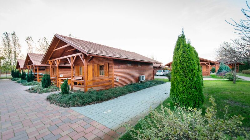 Finn típusú faházak: bungalow-k, faházak (a főépület mellett helyezkednek el- 5 sorban-, összesen 16 db) 2 hálószobával, egy étkezővel egybekötött nappalival, berendezett konyhasarokkal, saját fürdőszobával- zuhanyzóval és hajszárítóval ellátott-, külön WC-vel és terasszal rendelkeznek- 64m2 alapterületen. Összesen 6 fő elhelyezésére van lehetőség (2 db hálószoba+ kihúzható kanapén a nappaliban további 2 fő részére). Pótágy bekészítésére nincs lehetőség! A televízió (csak a nappaliban), internet csatlakozás, hűtő- fűtő klíma, hűtőszekrény, telefon, mikrohullámú sütő, tea- és kávéfőző és 6 fő részére étkészlet, evőeszközök, edénykészlet valamint mosogatószer és szivacs, ruhaszárító található felszereltségei között. Fürdőköntöst és wellness törölközőt csak térítés ellenében tudnak biztosítani, saját fürdőköntös és wellness törölköző használata megengedett! A bungalow-k nem dohányzóak! Dohányzási lehetőség a teraszon biztosított.