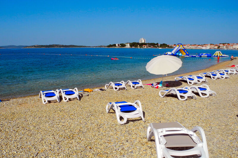 Vodice városa Sibeniktől 14 km-re, Dalmácia középső részén található. Nevét a környék nagy édesvíz készlete miatt kapta. A vaskor idejéből is találtak életre utaló maradványokat, tehát már akkor lakott terület volt. A környék sok forrásának köszönhetően a helyiek eredetileg főként mezőgazdasággal és kereskedelemmel foglalkoztak. Történelme során számos nép uralkodott a lakosok felett. A török háborúk idején ezt a várost nem sikerült bevenniük a támadóknak, a masszív városfalaknak és az őrtornyoknak köszönhetően. Ennek a falnak ma már csak a maradványait láthatjuk. A 16. századból csak a Caricov-torony maradt meg épségben. Kulturális látnivalók szempontjából még a város központjában található Szent Kereszt három hajós barokk templom érdemel említést. A települést mindkét oldalán strandok fogják körül. Ezek főként kavicsosak, egyes részein homokos feltöltéssel, emiatt mindenképp ajánljuk a vízicipő használatát. A családosok körében főként a Plava Plaza kedvelt, mivel ez egy homokos strand és közepesen lassan mélyül. A strandokon számos szórakozási lehetőség adott, hiszen motoros és nem motorizált sportolási lehetőségek is elérhetők. A parton pálmafákkal szegélyezett hangulatos sétány vezet végig, rengeteg kávézóval és étteremmel. Az esti órákban pedig több zenés szórakozóhely is várja a kikapcsolódásra vágyókat. A város környéke ideális a kirándulók számára is, kerékpárút vezet a település fölé emelkedő Okit hegyre, ahonnan páratlan kilátás nyílik a környékre.