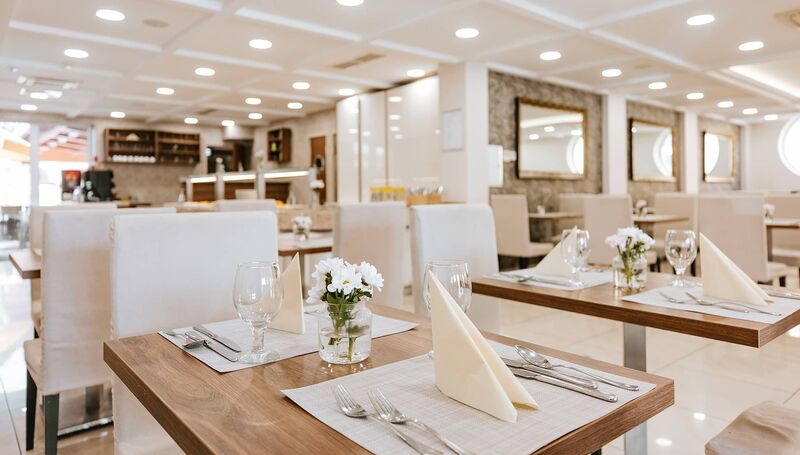 Az étteremben minden reggel svédasztalos reggeli várja kedves vendégeket. A bőséges büféasztalon naponta változó hideg, és meleg reggeli ételek és italok, várják a vendégeket, hogy jól induljon a nap. Az este sem telhet el kulináris élvezetek nélkül. Ismét gazdagon terített svédasztallal várják vacsorájukat elfogyasztani vágyó vendégeket. A kínálat összeállításánál figyelembe veszik a nemzetközi és hazai gasztronómia újdonságait, valamint a különböző táplálkozási szokásokat.