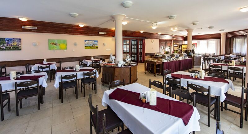 A földszinten található az étterem, amely félpanziós ellátás keretében büféasztalos reggelit és vacsorát kínál. Az étterem utcai frontján lévő terasz nyaranta kellemes időtöltést biztosít. A szállodahallból nyíló kávézóban – amely szintén rendelkezik külső terasszal - nem csak kávé-, tea- és egyéb italkülönlegességeket, hanem kávéházi ételeket is kínálnak.