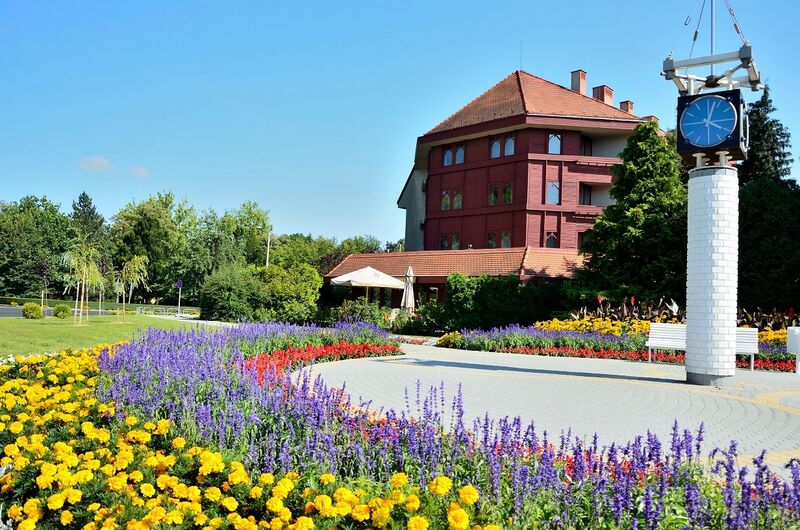 A szállodával szemközt található természetvédelem alatt álló parkban a Nagyatádi Termál- és Gyógyfürdő egész évben gyógyhatású termálvízzel és különböző gyógykezelésekkel várja a pihenni és gyógyulni vágyókat. A fedett térben 34, 38 és 42 fokos gyógymedencék, az elkülönített helyiségekben pedig kádfürdők találhatóak. Az épületben finn szauna és átriumos medence áll a vendégek rendelkezésére. A parkban lévő szabadtéri medencék – ahogy a fürdő többi része – egész évben igénybe vehetők. A nagyatádi termálvizet 1906 óta használják fürdőzésre. Az ivókúrára is alkalmas vizet az ország legjobb gyógyvizei között tartják számon. A termálvíz kitűnően alkalmas reumatikus betegségek, ízületi panaszok gyógyítására, törések utáni rehabilitációra, nőgyógyászati panaszok és gyomorbántalmak kezelésére. Az ivókúrára gyomorsavtúltengés, emésztési zavarok, epebántalmak és székrekedés esetén ajánlott.