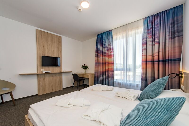 A szobák légkondicionáltak, egyedi függönyökkel felszereltek. Az északi part egyik legszebb kilátását kínáló panoráma teraszon és az étteremhez közvetlenül kapcsolódó teraszon nyári estéken kerti lámpák, gyertyák és az esti Balaton fényei mellett élvezhetik a pihenés minden pillanatát.