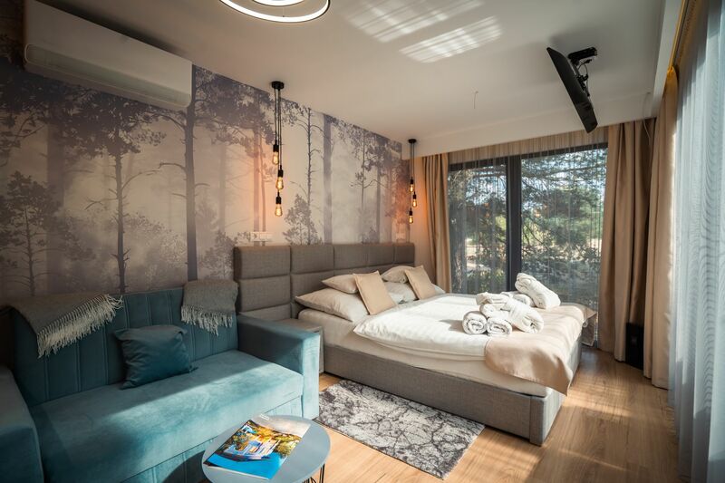 Az újonnan foglalható erdei lakosztály olyan apartman, mely a természet szívében található (az erdő közepén), kényelmet és eleganciát kínálva, egyedülálló környezetben. A lakosztályban található egy nappali franciaággyal és kihúzható kanapéval, berendezett konyharész, zuhanyzós fürdőszoba. Esténként lenyűgöző látvány tárul Ön elé, közben pedig megfigyelheti az erdei állatokat is a kényelmes, modern apartmanjából. A privát pezsgőmedencében ülve, az erdő hangjait hallgatva teljesen elvarázsolódhat és relaxálhat! A Bodrogi Forest Homes – Erdei lakosztály kiváló választás azok számára, akik szeretnék megtapasztalni a természet közelségét és nyugalmát anélkül, hogy lemondanának a luxusról és a kényelemről.