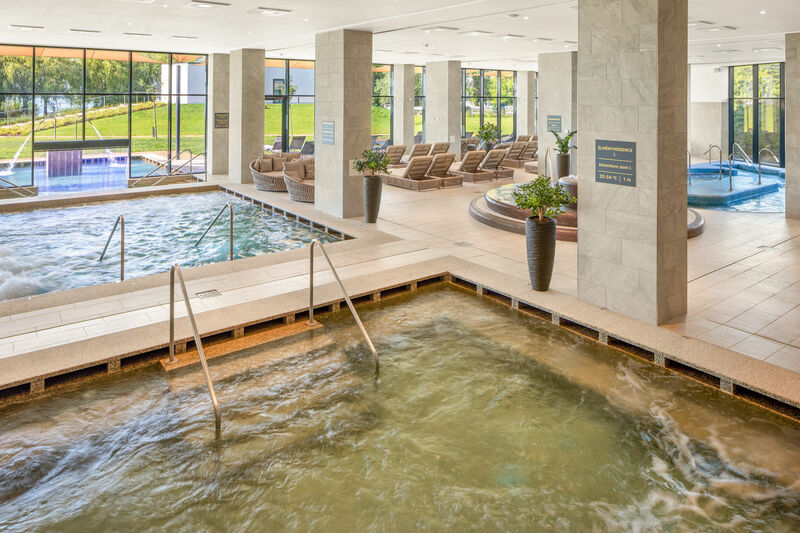 A szálloda 1.500 m2 alapterületű exkluzív Spa és Wellness világgal várja a feltöltődni vágyókat. A sokszínű medencevilág kínálata között mindenki megtalálhatja a maga elképzeléseinek megfelelőt. Sütkérezzen egy koktél társaságban a külső medencében, vagy relaxáljon a különböző élménymedencék egyikében. És hogy a testi lelki feltöltődést még magasabb szintre emeljék, merüljön el a szaunavilág kínálatában, és élvezze a szemet gyönyörködtető kilátást a külső panorámás szaunában.