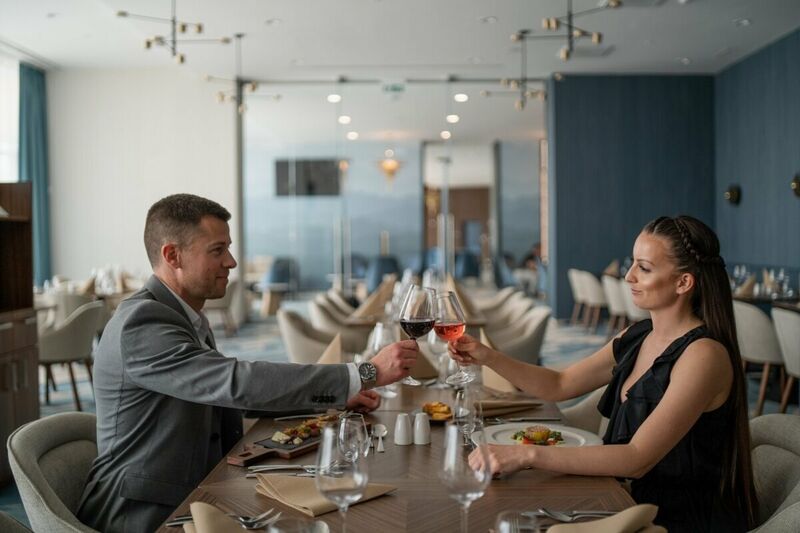 Kényeztesse ízlelőbimbóit kivételes környezetben. Az örökpanorámás SunRise étterem az épület keleti felén helyezkedik el, így a vendégek minden nap a napfelkeltében gyönyörködve fogyaszthatják el bőséges választékú reggelijüket, illetve zárhatják napjukat ínycsiklandozó svédasztalos vacsora mellett a Balatoni horizont társaságában. A szálloda Capella bárbárjában különböző testes, zamatos bor, illetve frissítő koktélkínálattal várják a vendégeket.