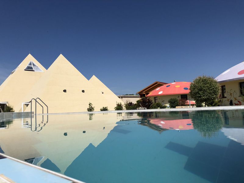 Ha a fürdőkultúra iránt érdeklődik, az EGYIPTOMI KHEOPSZ piramis méretarányos kicsinyített mása áll rendelkezésére, amelyben három beltéri termálvizes medence (35,37,40 fokos) található és a két kültéri termálvizes dézsával (36-40 fokos) és a finn szaunával együtt egész évben rendelkezésre állnak, hogy kikapcsolódhasson-feltöltődhessen. Nyáron kültéri úszómedence és napozó terasz teszi teljessé a pihenést.