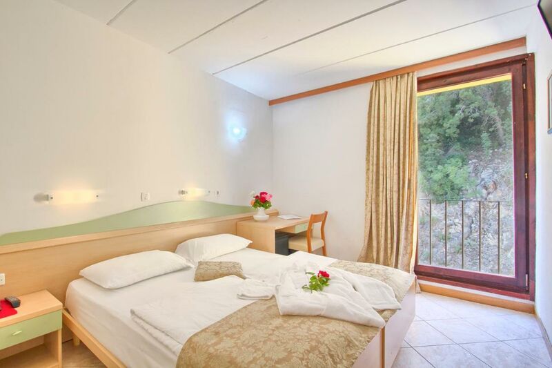 Kétágyas tenger oldali balkonos szoba: Régebbi típusú bútorokkal berendezett 20-25 négyzetméter alapterületű, saját fürdőszobával, légkondicionálóval, TV-vel, mini hűtő, balkonnal, hajszárítóval, széffel, telefonnal és wifi-vel rendelkezik. A szobák tenger oldali szobák, amely a szobák irányultságát mutatja, nem pedig a panorámáját. A kilátást a növényzet és más épületek zavarhatják. A szoba tengerre néző panorámával nem rendelkezik.
