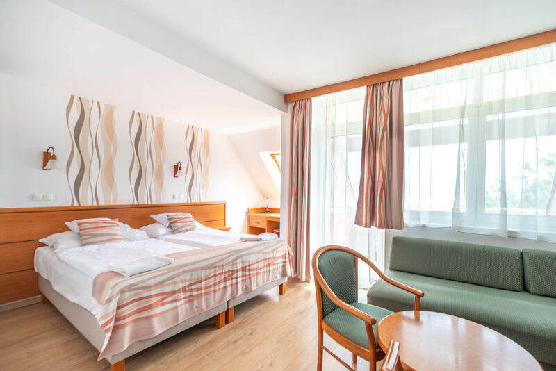 A hotel wellness részében uszoda–élményfürdő, finn- és infraszauna, gőzkabin, napozóterasz (máj-okt.) várja vendégeket. A szálloda fitness terme modern kardiofitness gépekkel felszerelt. A szálloda gyógyászati részleggel bővült, ahol szakorvosi vizsgálat után sokféle terápiás kezelés: fizikóterápia, elektroterápia, iontoforésis, ultrahang, magnetoterápia, egyéni gyógytorna, balneoterápia, vízi torna, mauálterápia, gyógymasszázs vehető igénybe.