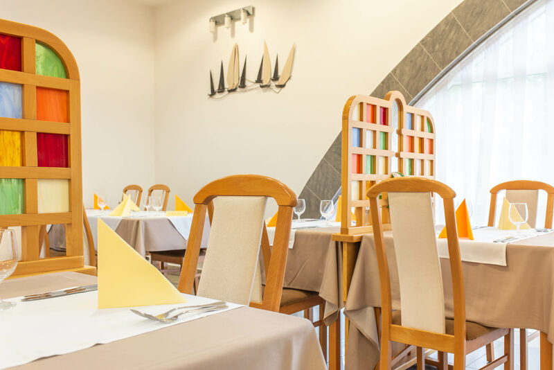 A hotel tágas, légkondicionált éttermében vehetők igénybe félpanziós szolgáltatások, melynek részét képezi a büféasztalos reggeli és vacsora. (Ételallergiával és érzékenységgel kapcsolatos igényeiket előzetes egyeztetés alapján biztosítani tudják). Vacsoránál változatos menüsorról mesterszakács gondoskodik. Az étterem is bababarát, így etetetőszék, bébi ét- és evőeszközkészlet kérhető. A szálloda drink bárja 0-24 óráig áll vendégek rendelkezésére, ahol számos balatoni borkülönlegességet is megismerhetnek.