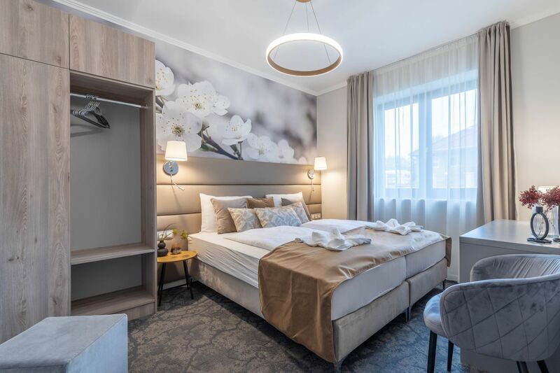 A Villa Bérc**** Egerszalók egy frekventált, de mégis csendes pontján, egy zsákutca végén, a természet szomszédságában található. Élvezze a megnyugtató környezetet és szálljon meg a Bükkben is megtalálható gyógynövények és virágok ihlette 8 igényesen berendezett, tágas szoba egyikében, ahol minden adott a tökéletes kikapcsolódáshoz. A pihentető alvást a kiváló minőségű 23 cm-es ágymatracok, a szellőztető berendezés által folyamatosan cserélt friss levegő és a szobánként szabályozható hűtés fűtés biztosítja. A szobában kis hűtő is található, a zuhanyzós fürdőszobában pedig hajszárító is rendelkezésre áll. Minden szobában wifi elérés biztosított. Ha rossz az idő vagy nincs kedve kimozdulni a Netflix több száz filmjéből választhatja ki mit nézzen síkképernyős TV-jén.