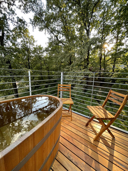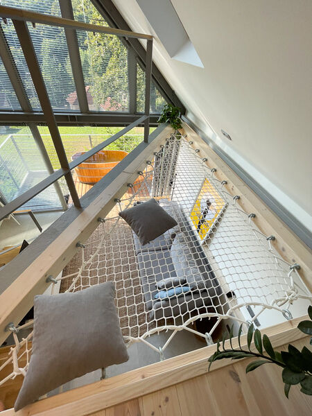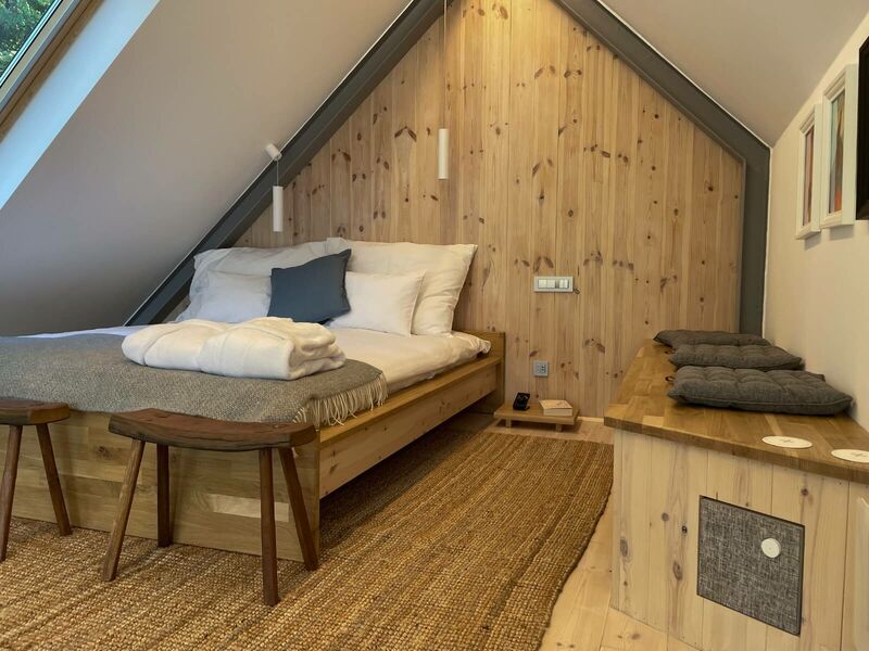 A noszvaji Sárga Rigó két szintes épülete a minimal és a biofilia szerelmeseinek kedvez. Japán és skandináv stílusban épült, acél tartószerkezete indusztriális hatást kölcsönöz, míg a belső terek lágy, otthonos miliőt teremtenek. Hatalmas üvegfalán át a síkfőkúti völgy páratlan panorámája tárul elénk. Teraszán kényelmes, fűtött vizű akác dézsában ejtőzhetsz az erdő hangjait hallgatva.