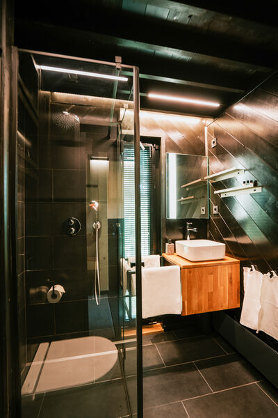 A Fekete Rigó nem véletlenül kapta a nevét: a fekete ház valóban lélegzetelállító látványt nyújt, miközben tökéletesen beleolvad a környezetébe. Ez a varázslatos épület ideális helyszínt biztosít két fő elvonulásához, legyen szó pihenésről vagy inspirációról. A ház egyik oldala egy hatalmas üvegfal, amely csodálatos panorámát tár elénk. A fény és a tér harmóniája, valamint a környező táj minden részletének megfigyelése különleges élményt nyújt a vendégek számára.