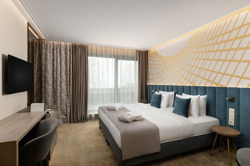 A szobák öt épületben helyezkednek el, melyek közül 4 épület a főépülettől körülbelül 50-80 méterre található. A szobákban egyedileg szabályozható hűtés/fűtés, prémium minőségű Billerbeck ágyak és matracok, zuhanykabinos fürdőszoba, széles csatornakínálatú LED Tv, laptop méretű szobaszéf, mini hűtő, pipereszer és fürdőköntös, valamint hajszárító bekészítés várja a vendégeket.