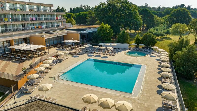 Elhelyezkedés: Medulin városában, Pula városától 10 kilométerre, Medulin központjától 500 méterre fekszik. Ez a családok körében népszerű, középkategóriás szálloda a homokos, lassan mélyülő tengerparttól 200 méterre helyezkedik el. A szállodához legközelebb eső partszakaszok (150 m) kavicsos, homokos és sziklás partok keverékre. Két kültéri tengervizes medencével, lifttel, recepcióval, TV szobával, étteremmel és bárral rendelkezik. Az épület teljesen légkondicionált. A szálloda régebbi építésű, de az elmúlt pár évben teljesen felújították.